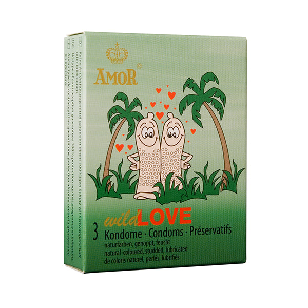 WILD LOVE für wilde Liebe: 3 naturfarbene Condome (in der Standardgrösse 52) mit Noppen!