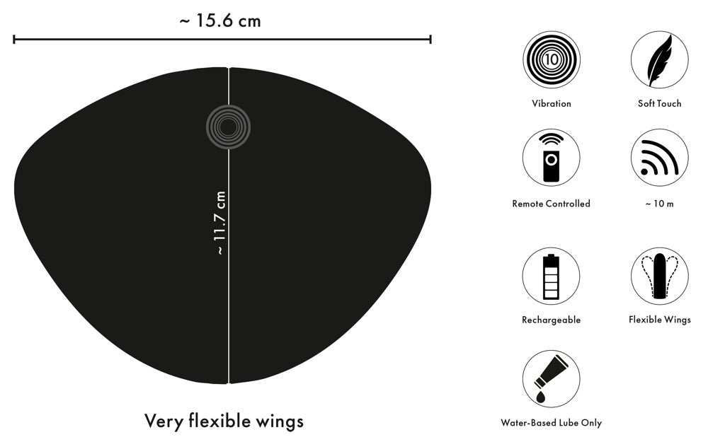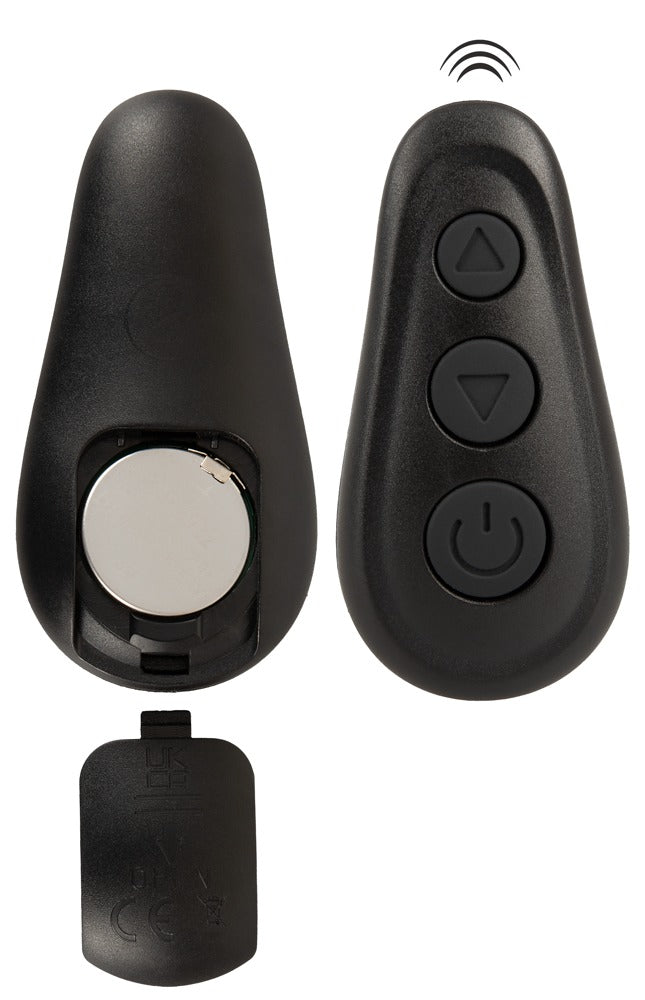 Mit der praktischen Fernbedienung sind 10 Vibrationsmodi in jeweils 5 Intensitäten bequem per Knopfdruck steuerbar. Die Fernbedienung hat eine Reichweite von 10 Metern und wird mit einer CR2032 ausgestattet. Die Vibrationen können aber auch direkt am Toy gesteuert werden.