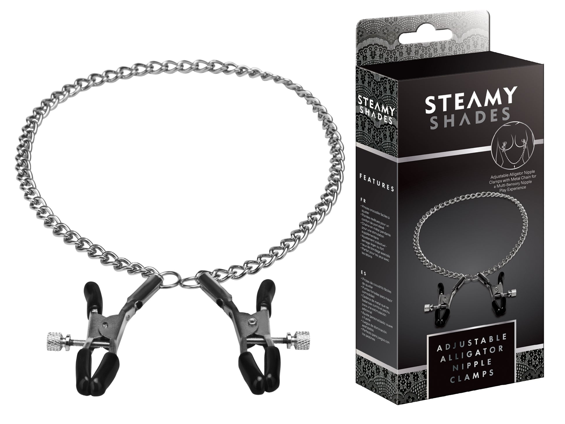 Die Nippel sind eine stark erogene Zone des Körpers. Es gibt sogar Berichte von Frauen, die nur durch die Stimulation der Nippel einen Orgasmus erreicht haben. Die ADJUSTABLE DOUBLE CHAIN NIPPLE CLAMPS von Steamy Shades sind ein wunderschönes Spielzeug, Accessoire und Dekoration, die ein multisensorische Nipple Play Erfahrung garantieren. Intensiviere den Lustschmerz durch zunehmenden Druck, während die Kühle der Ketten ein kitzelndes und neckendes Gefühl auf der Haut hinterlassen. Diese sogenannten Krokodilklemmen haben viele Vorteile: